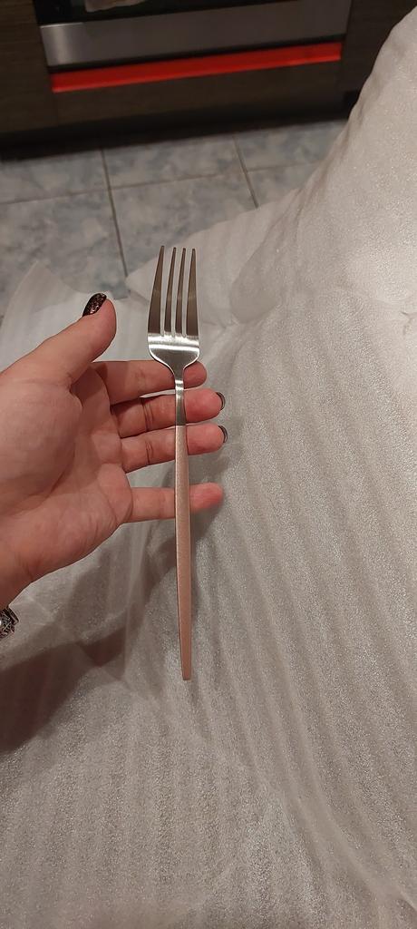 The knives are as in the photo, bulky and heavy, but the forks and spoons from another set of cutlery are flat, thin and the utensils are very light. I do not recommend it.