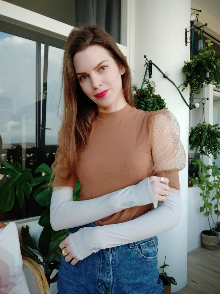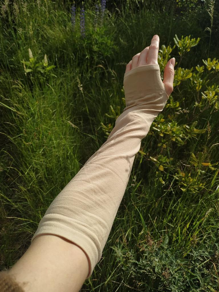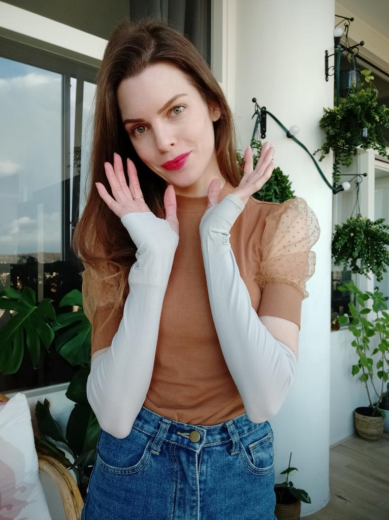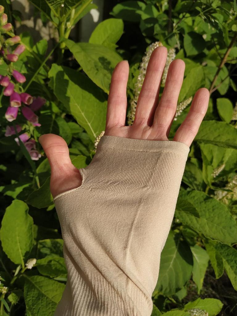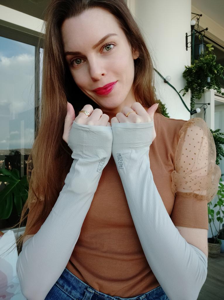 I bought these arm sleeves before in grey. They are great!! Protect well against UV sun ☀️ rays. I use them every day. Even when the weather is hot, it's comfortable to use. They are made of a light and breathable stretch fabric. This is the skin colour. Also available in other colours! The package arrived in 3 weeks at home, 3 pairs in one order! 👍👍👍
