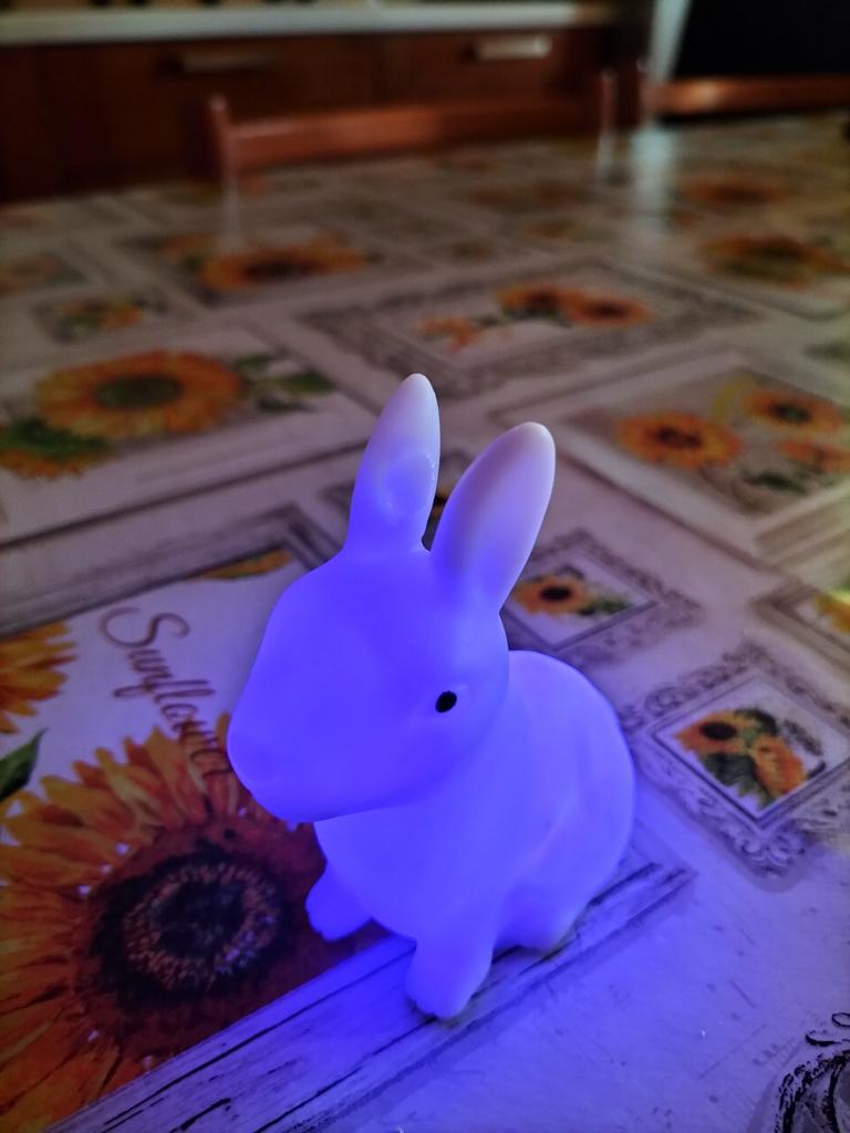 Beautiful bunny, arrived today and early equal to the photo, I expected it to be a little bigger, it makes all the colored lights