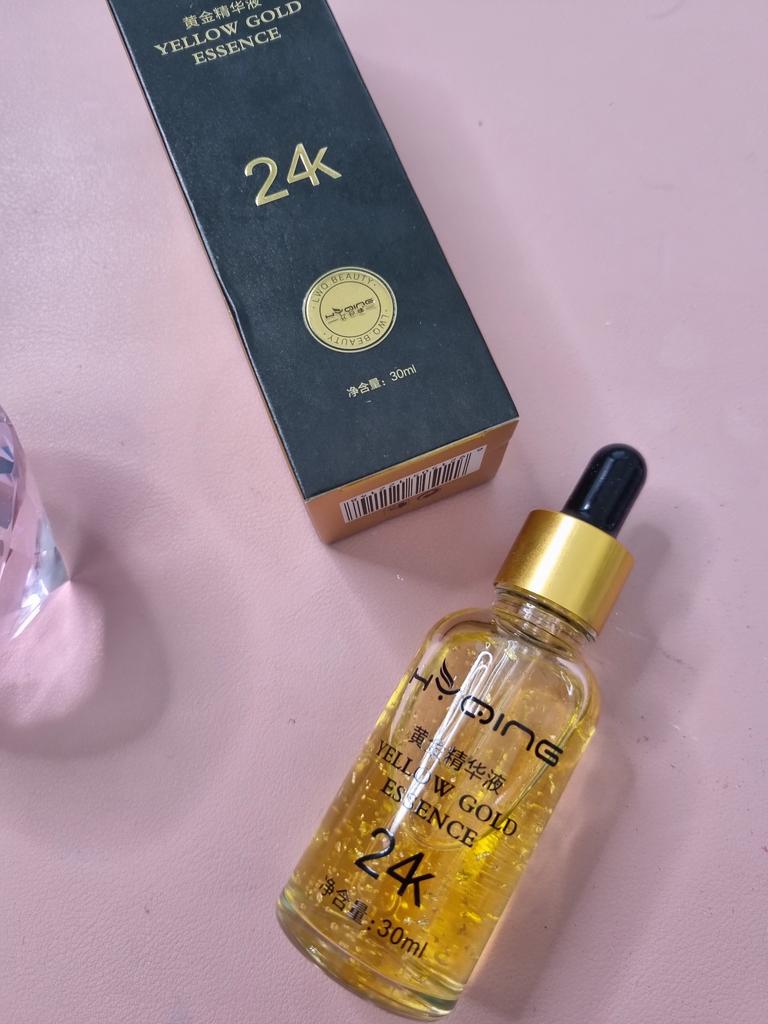 24k gold face serum Delivery was super fast to UK 🇬🇧 Came in a beautiful box 📦 great for presents The bottle inside is glass with a dropper pipette for easy application to your face and neck To use apply after cleansing and toning with 4 to 5 drops and massage into the skin until absorbed Great for ageing skin, dull skin, rejuvenates tired skin, for fine lines and wrinkles Thankyou joom and joom seller ❤️