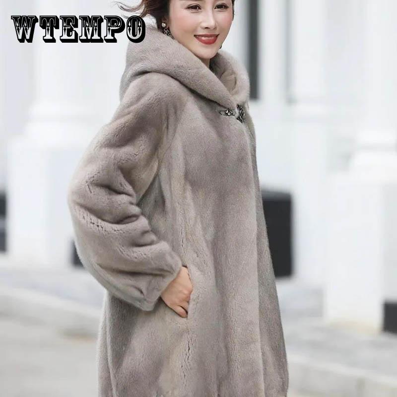 Fur Imitation Mink Fur Coat Female Hooded Middle-aged Mother Imitation Mink Fur Coat — buy online with free worldwide shipping!