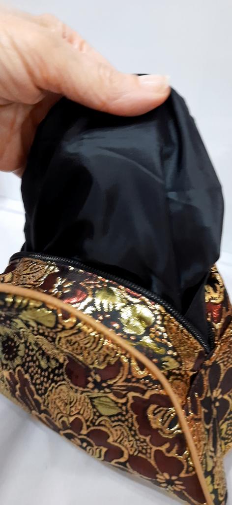 This bag from the Sultan is a beauty, made of tapestry fabric with gold thread. What a gift for the Day. I am simply delighted! Thanks to the manufacturer
