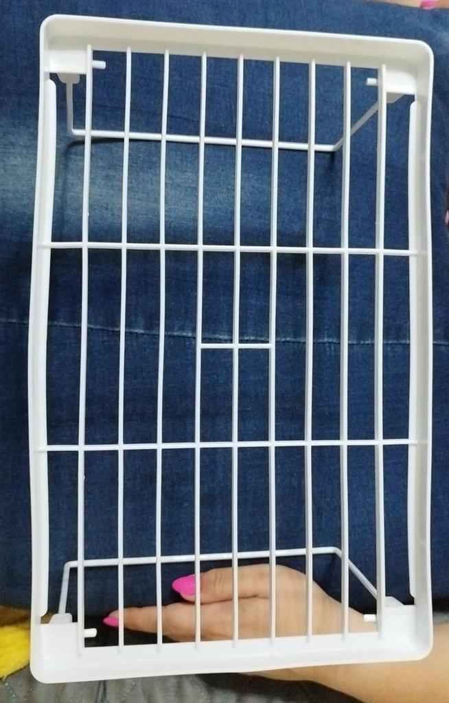 It arrived whole. The top grille is plastic, the legs look like metal.