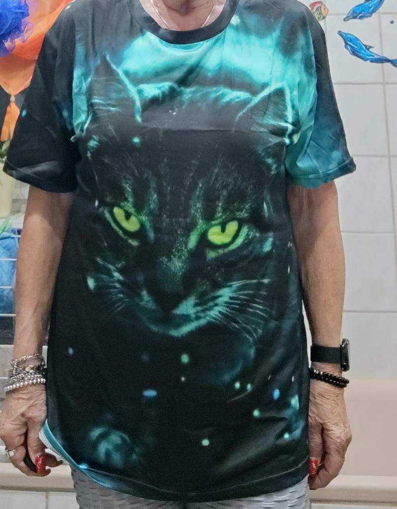2022 Women Summer T Shirt Cute Cat with Big Eyes Print Short Sleeve Tees Casual Printed Tops For Women — buy online with free worldwide shipping!