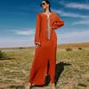 Women's Clothing Orange Handmade Rhinestone Webbing Dubai Loose Muslim Dress