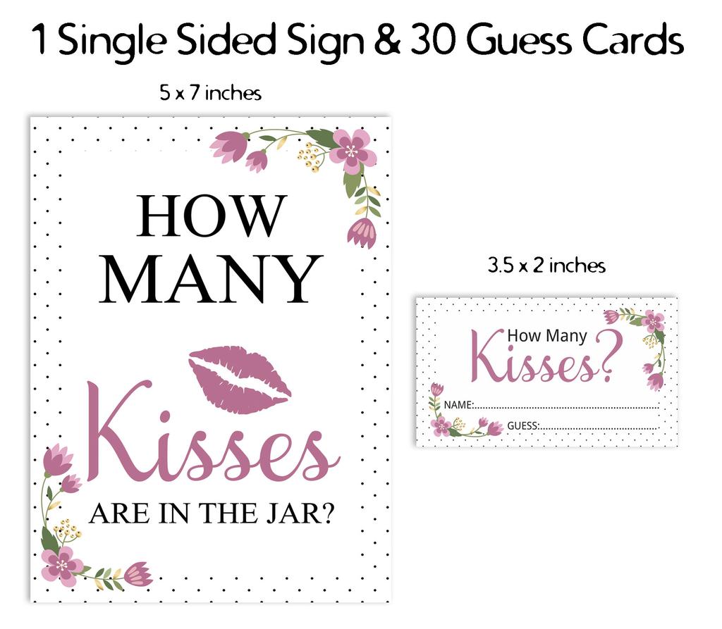 * Fill A Jar With Kisses Candy, And Have Everyone How Many Kisses Are In The Jar; This Will Surely Add A Fun Touch To Your Bridal Shower This Is Fun, And Interactive Games For You And Your Loved Ones Are Sure To Have An Unforgettable Time And Will Fill Your Shower With Lots Of Laughs For All Your Guest, Young, And Old. Comes In A Pack Of 30 Cards (3.5 x 2 Inches) And 1 Single Side Printed (5 x 7 Inches) Party Sign To How Many Kisses Are In The Jar.
