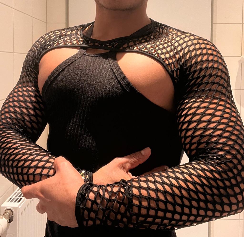 INCERUN S-5XL Summer Mens Fashion Long Sleeved Bare-midriff Tops Sleeveless O-neck Undershirt Mesh See-through Shirts Black Clubwear — buy online with free worldwide shipping!