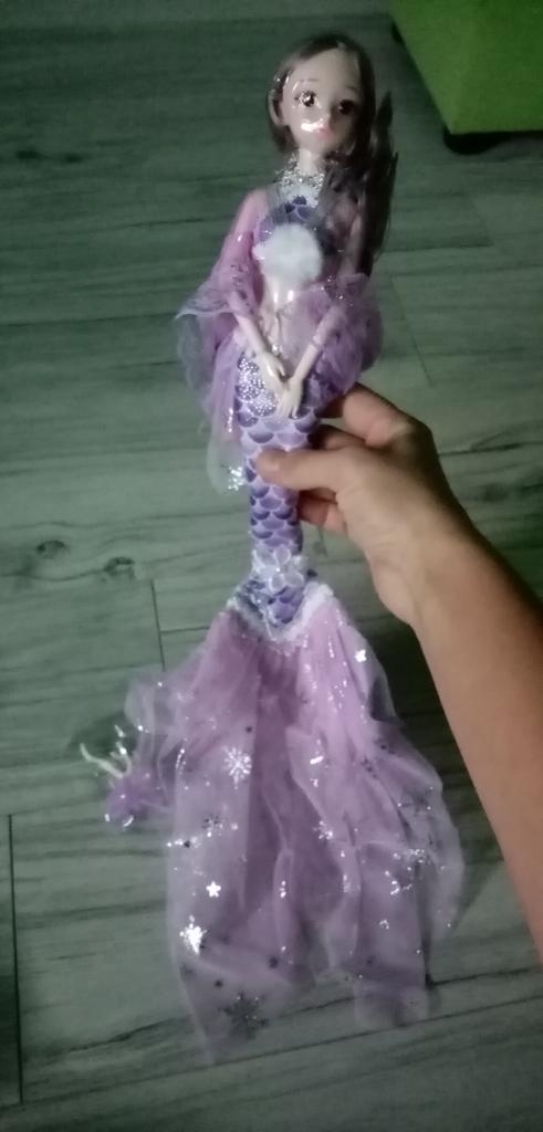 Beautiful tall doll. Legs, arms and even hands move. I didn't unwrap it because it was a gift. That's why it's so shiny in the photo. ❣️