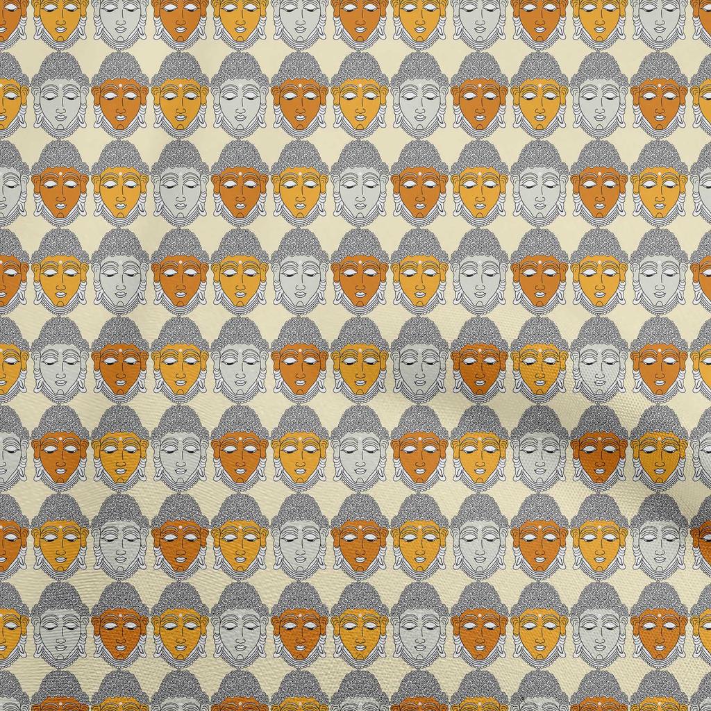 oneOone Cotton Flex Pale Yellow Fabric Lord Buddha Face Quilting Supplies Print Sewing Fabric By The Yard 40 Inch