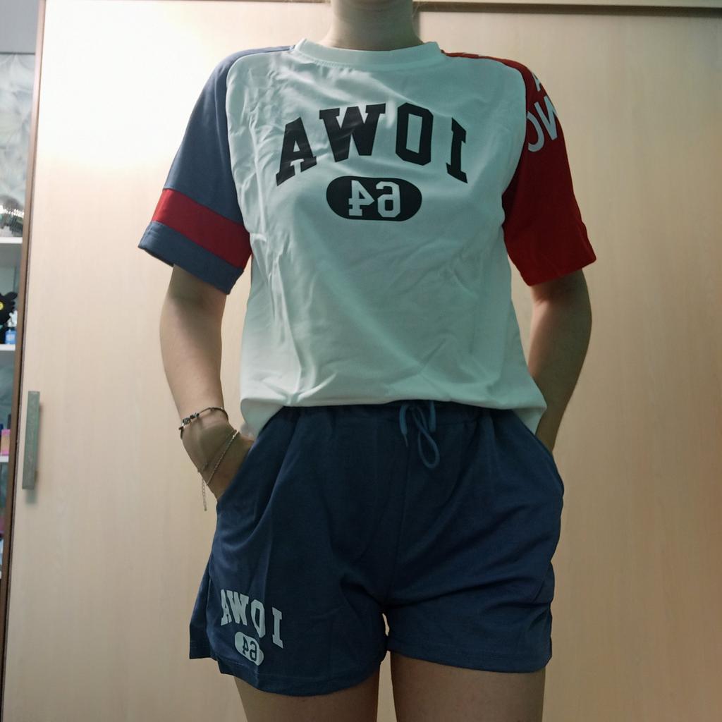 Two-piece Stitching Loose Large Size Fashion Sports Suit Women's Summer Sports Casual Short-sleeved Tops and Shorts — buy online with free worldwide shipping!