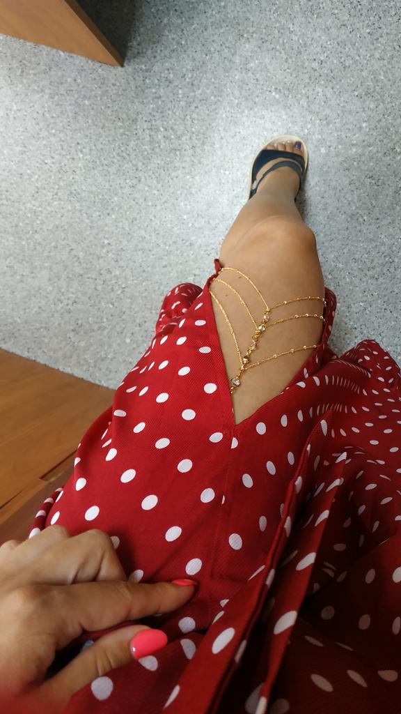 Super decoration. But if you have a leg circumference of more than 60, be careful with it. Because although it is held on a rubber band, the chains do not have any locks, they are worn on the leg.