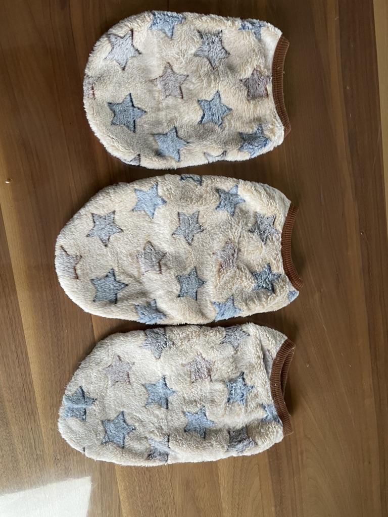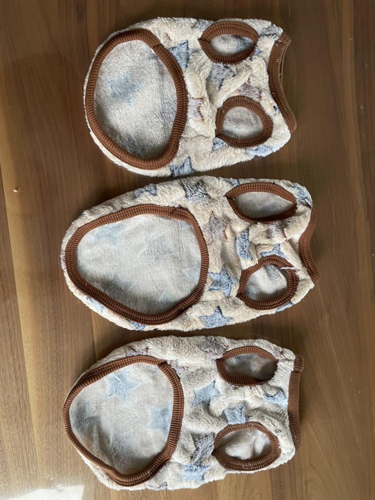 I ordered it for my 3 Yorkshire Terrier. The material is very pleasant and soft. The sizes fit perfectly. The only thing I would have to complain is that the rear part slides forward while running.