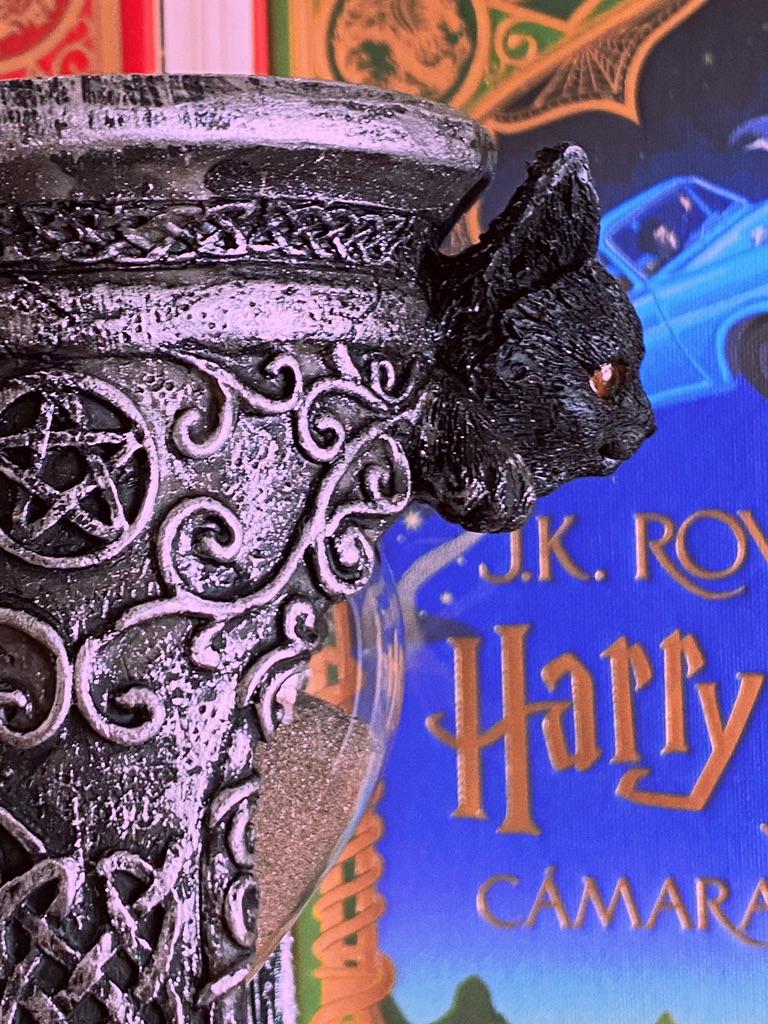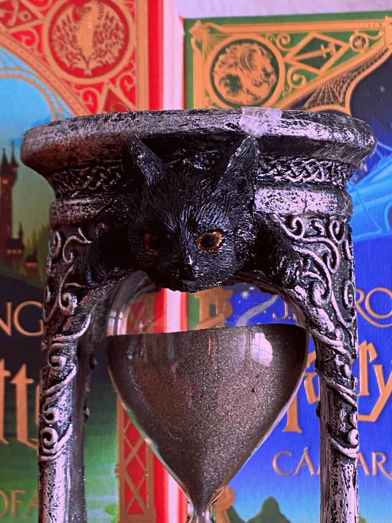 My house is a mix between Asia and Harry Potter, so any product that has witchy vibes... makes me happy 🤓 On Joom they have a great collection direct from England, and as soon as I saw this hourglass... I fell in love 😍 - It's a kitty hourglass. - It is big and heavy, you would be very surprised by the quality in person. - It came very protected between several boxes and plastic. - It looks beautiful as a decoration, it is a gem 🖤