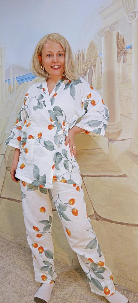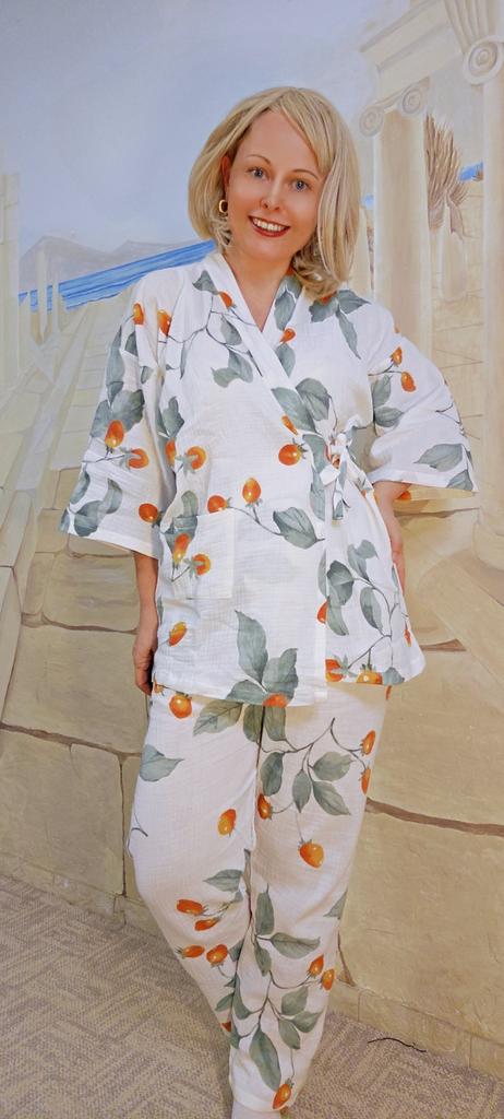 Women Kimono Pajamas Seven Point Sleeve Cotton Gauze Crepe Sleepwear Loose Home Clothes Two-piece Suit Pijamas — buy online with free worldwide shipping!