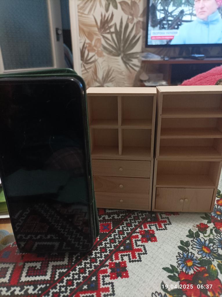 The cabinet is very beautiful, wooden, but too small for a children's playhouse.