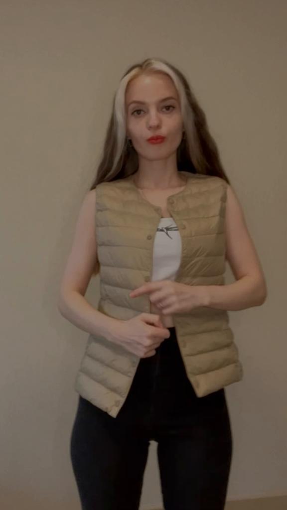 Fall Winter Women Crew Neck Sleeveless Single Breasted Lightweight Short White Duck Down Jacket — buy online with free worldwide shipping!