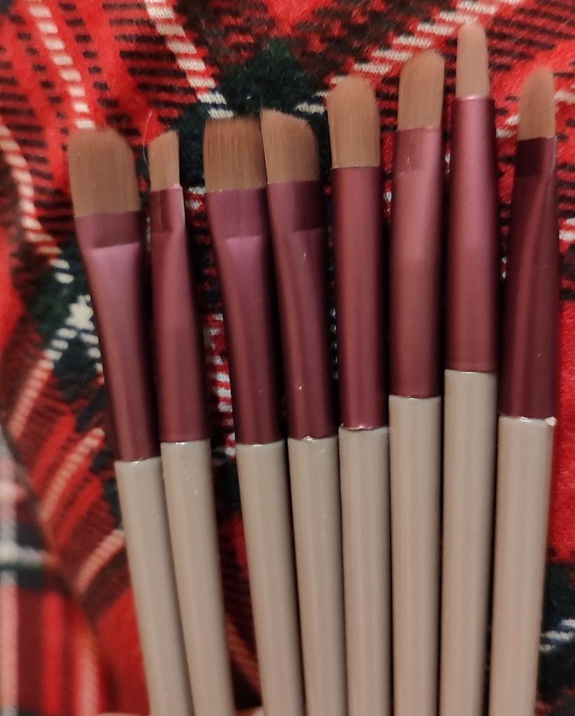 The brushes are so-so, the quality is poor. The fibers stick out, the cuts are not even, the thick brushes are very thin, I doubt that they will apply makeup well. Half the brushes are the same, I don’t see any difference.