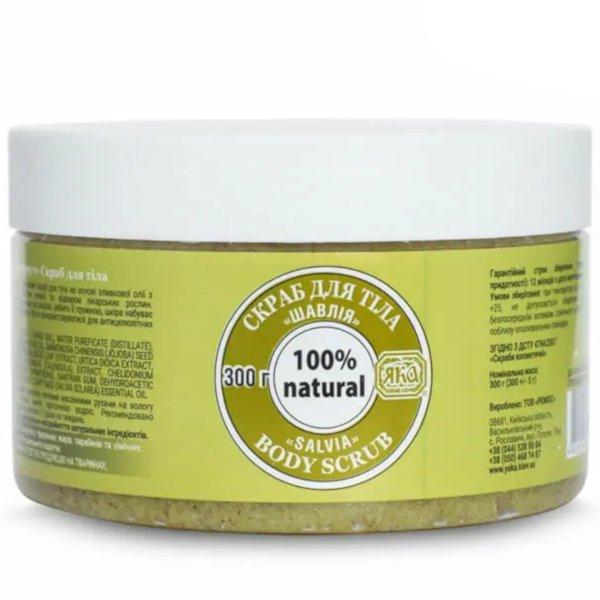 Use a body scrub with sage extract from the Ukrainian brand Yaka to treat your skin and preserve its beauty.