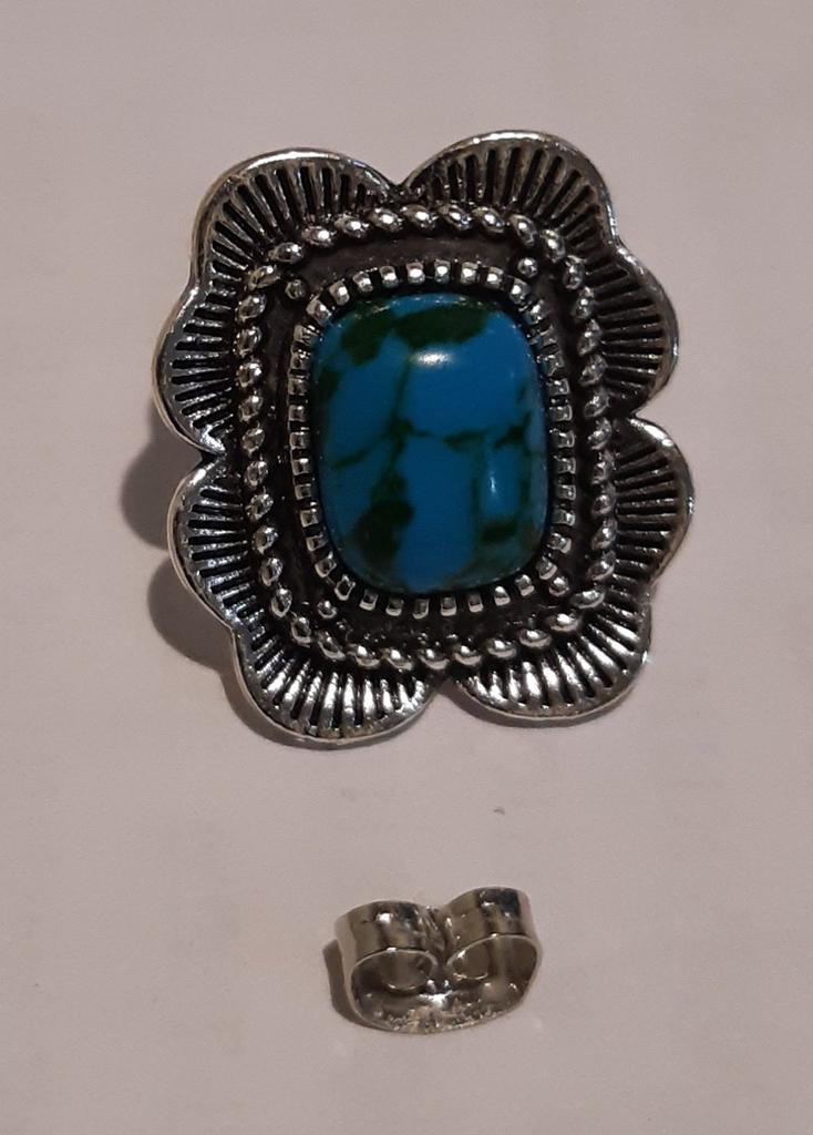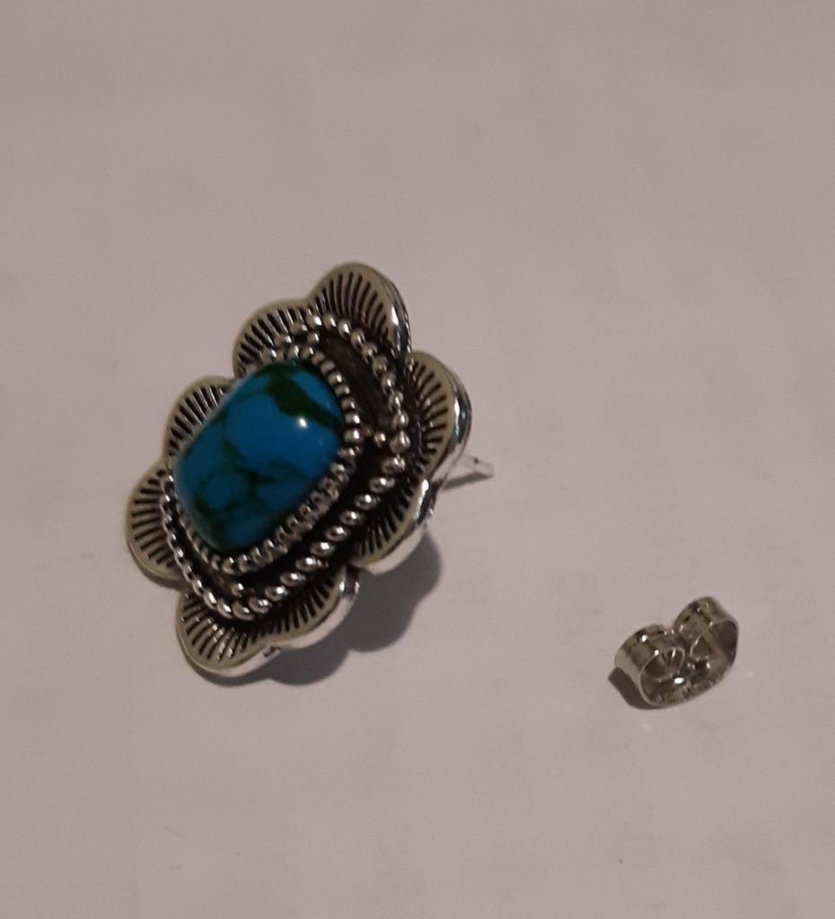 Vintage Irregular Metal Round Floral Inlaid Turquoise Earrings Fashion Ladies Hand Carved Stripe Pattern Stud Earrings — buy online with free worldwide shipping!