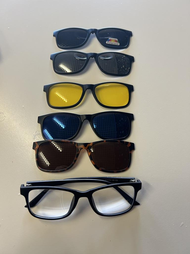 The actually have magnetic and a hook for the clip on sunglasses part. they aer a bit on the smaller side for my face but i will use them once i install new lenses. good for driving and sunny days.