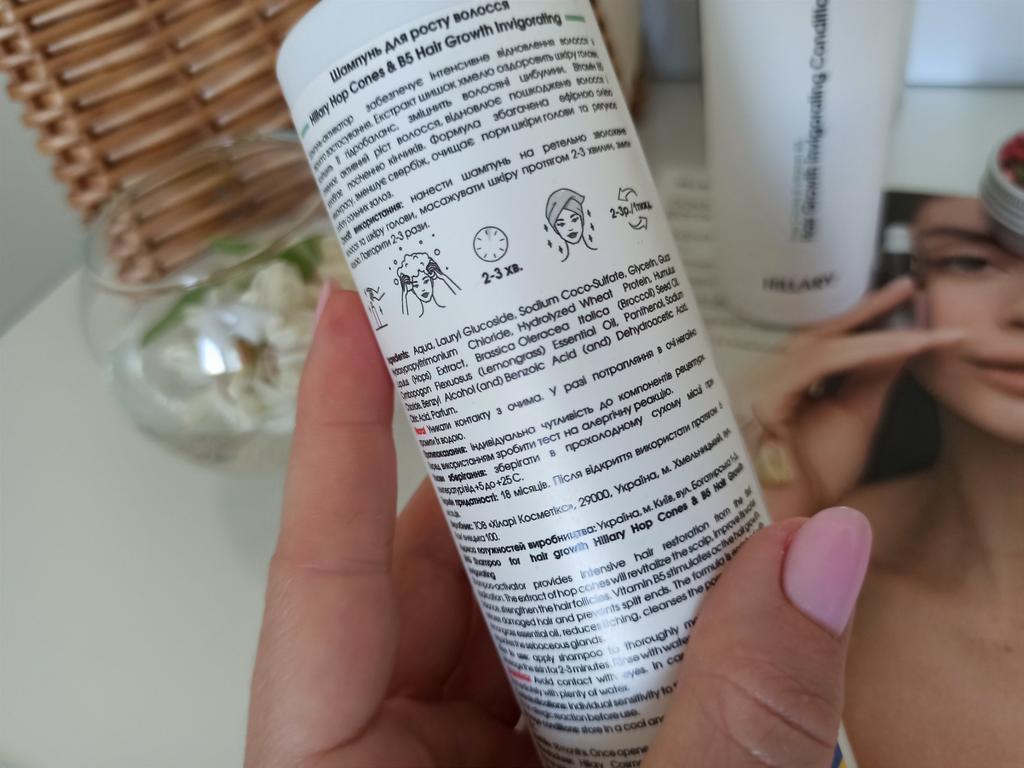 - Hillary Hop Cones & B5 Hair Growth Invigorating Shampoo, 250 ml;