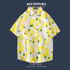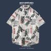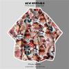 Retro Floral Shirt Blouse for Man Hawaiian Short-sleeved Floral Shirt Men's Loose Trend Couple All-match Five-point Sleeves