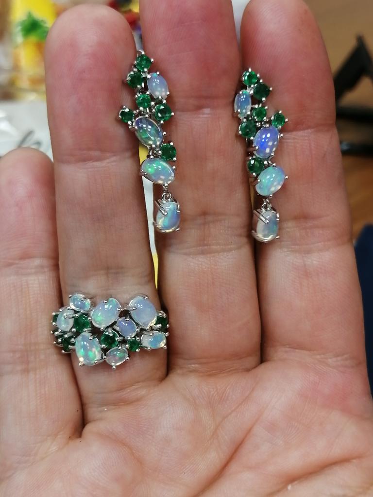 New design fancy opal emerald jewelry set natural gemstone 925 sterling silver ring clasp earring women nice gift — buy online with free worldwide shipping!