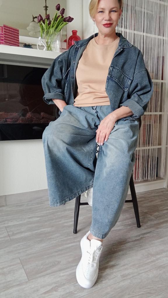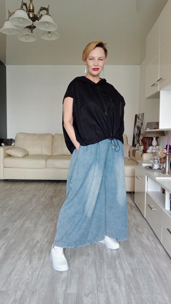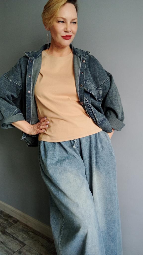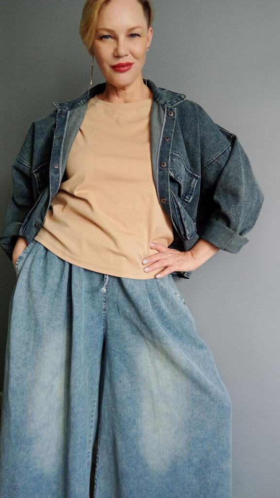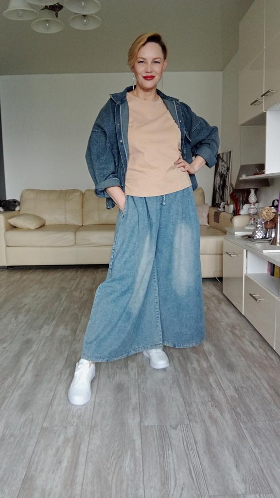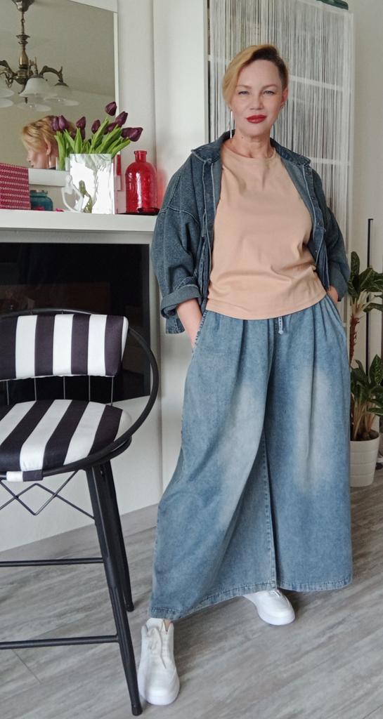 DIMANAF 2025 Summer Jeans Long Pants Plus Size Women Elastic Waist Pants Wide Leg Pants Loose Casual Denim Female Casual Trousers Pants Oversize — buy online with free worldwide shipping!