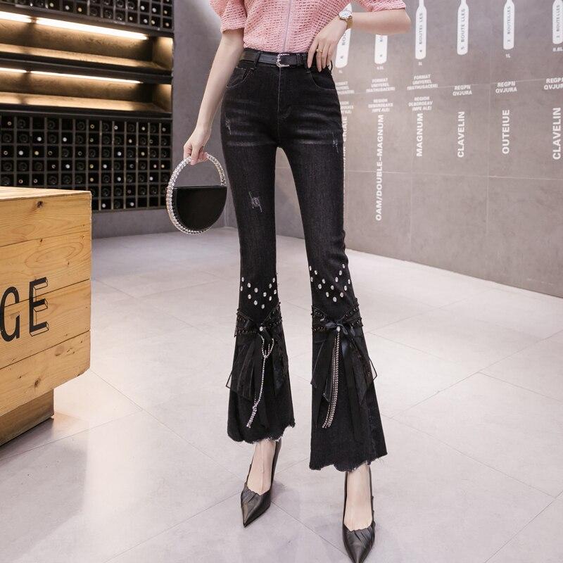 Spring 2022 womens fashion high waist Women's bow jeans skinny tassel woman denim capris flare Pants jean mom jeans trousers — buy online with free worldwide shipping!