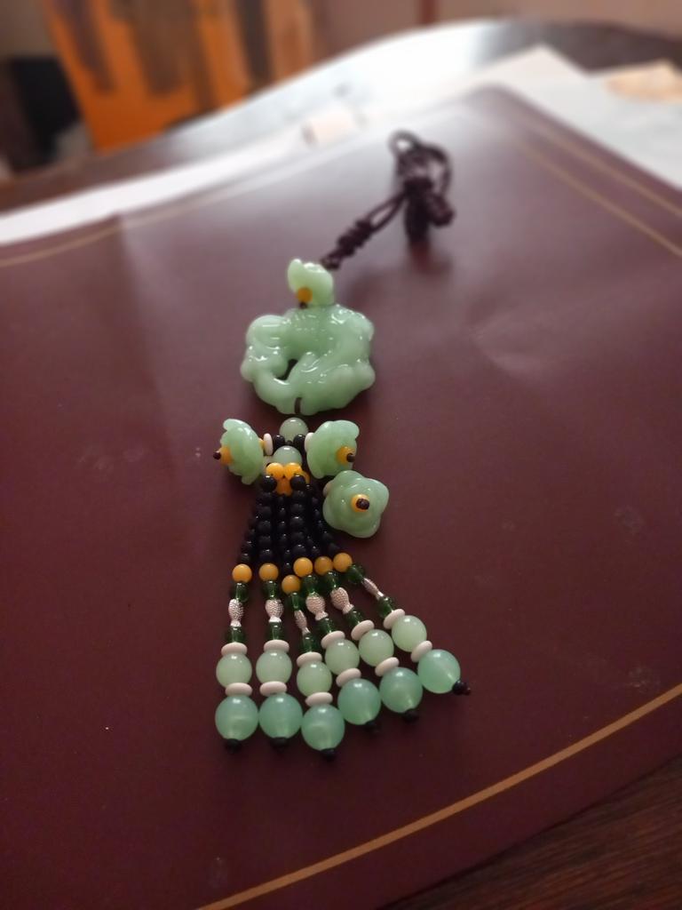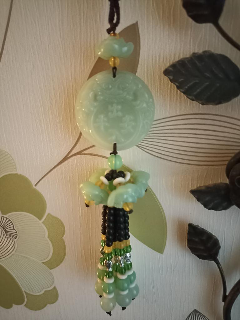 Home Green Jade Pendant Keychain Fortune Amulet Lucky Pendant Handwork Natural Obsidian Pendant