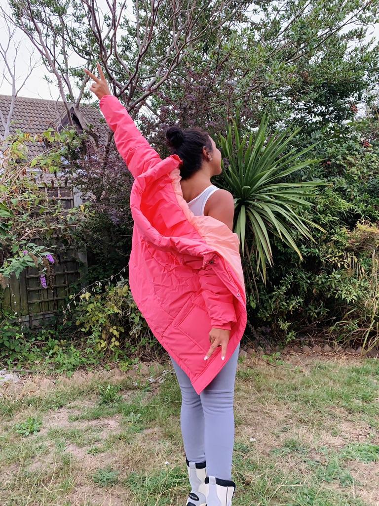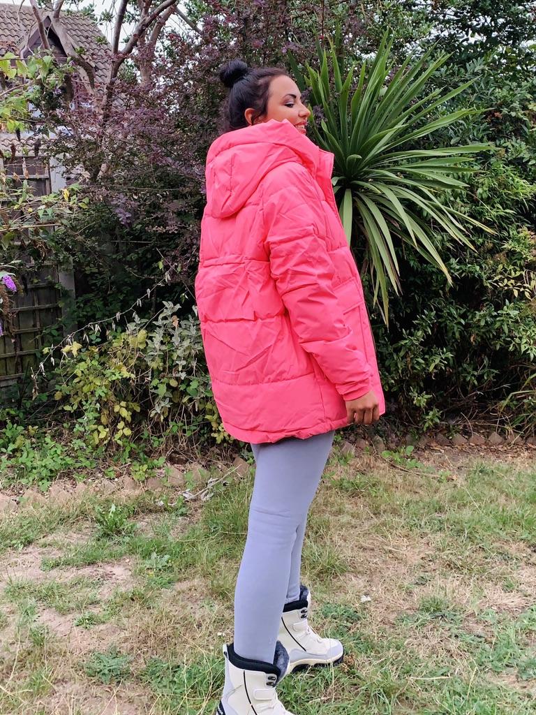 This jacket is brilliant!! So cosy!! 🤍 First of all, the jacket is such a beautiful strong neon pink! It looks immaculate and I am literally obsessed with the shade of pink because it looks perfect!! 💗💓💞 Secondly, it is sooo thick and warm, yet extremely light!! You literally are fully wrapped, yet you barely feel it ok. It's brilliant!! 😍 The sleeves are long, which can sometimes be a struggle as my arms are quite lon. On top of all that, it has deep pockets where you can carry so many things in as well as hide your hands from the cold! This jacket is absolutely genius! Literally everything has been thought of already 😁🤍 It arrived fast, perfectly wrapped and protected for transportation and it's in perfect condition. I 💯percent recommend this jacket to everyone while it is still on stock!! 😍 Instagram @serendipityssynchronicity 📸