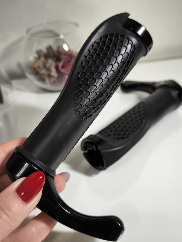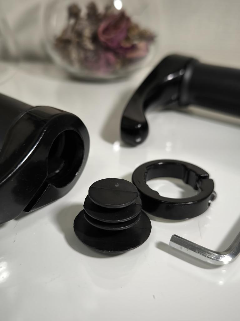 Bicycle grip excellent quality. Ergonomic. The rubber is soft. They feel good in your hand.. Length 11 cm The kit includes 2 grips, 2 plugs, 2 clamps and a key. Easy to assemble. Come in a box. I recommend 🤗