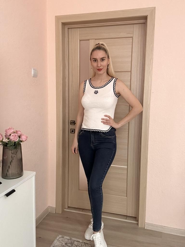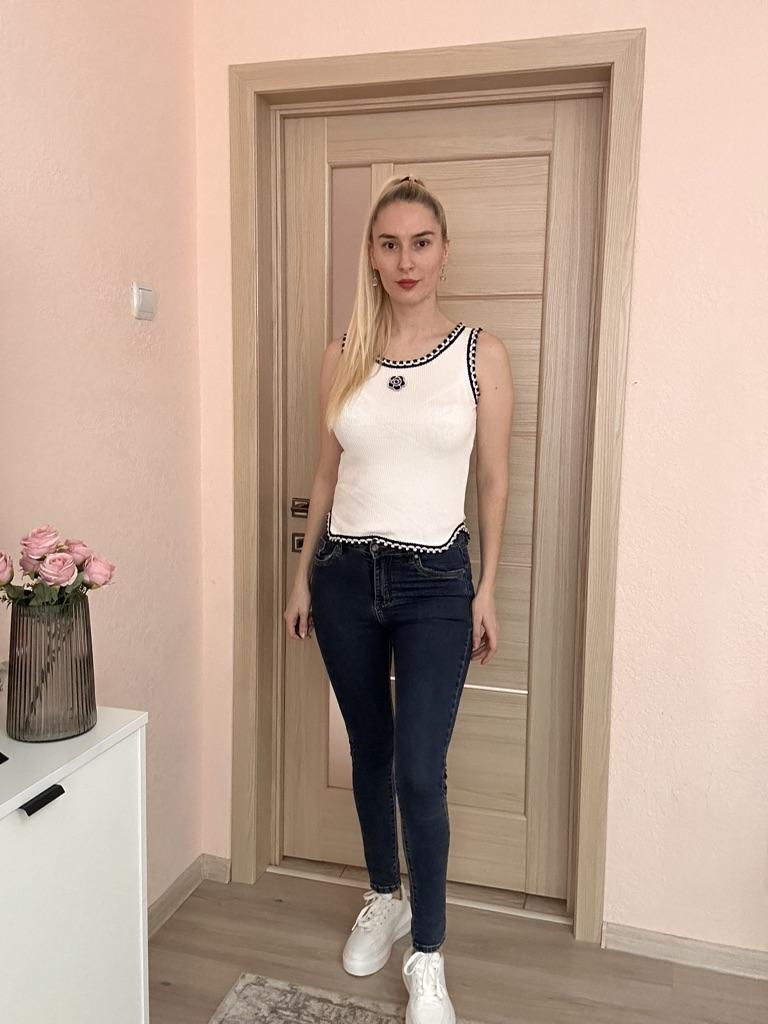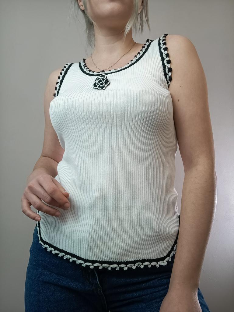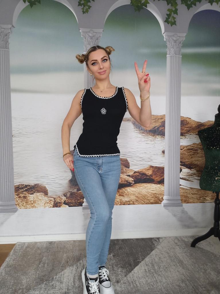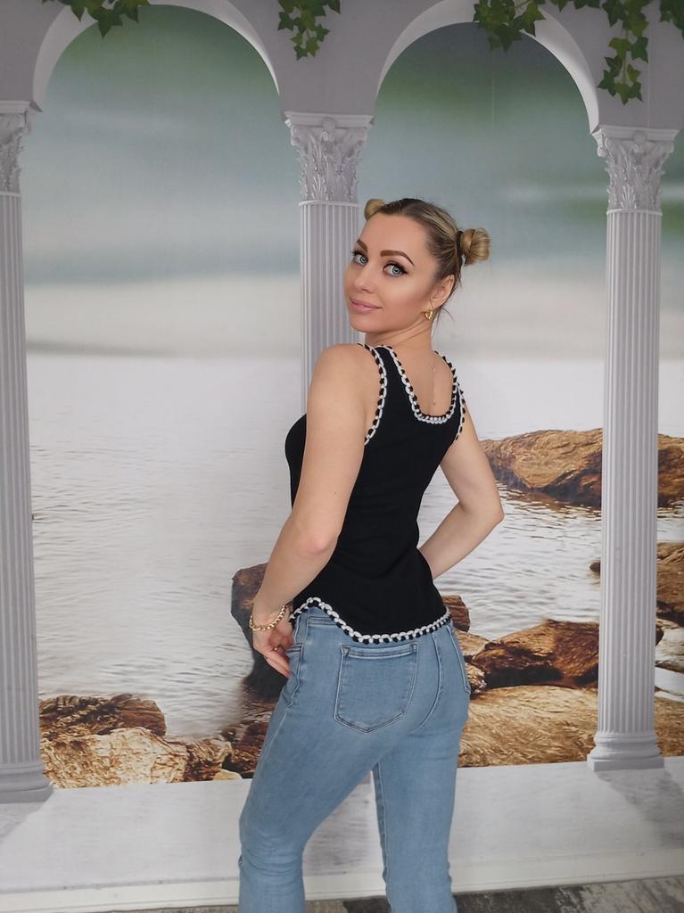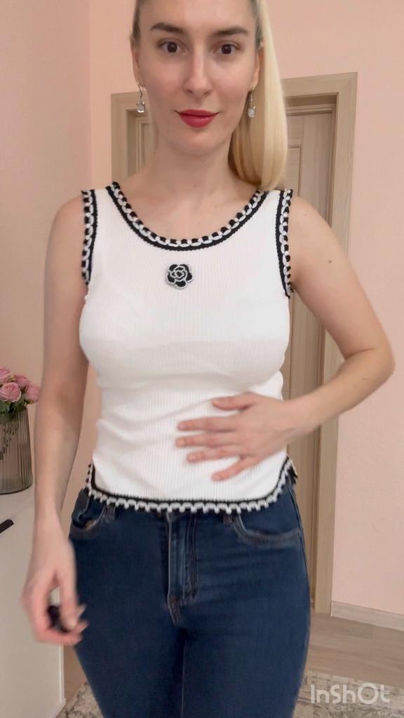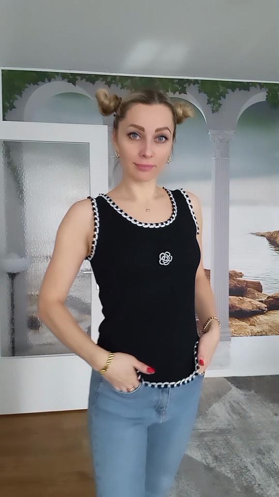 Beautiful top with a brooch flower 👍! Delivery time 🌞: 19 days to Germany. ♻️Scope of delivery: Included in delivery is a beautiful top 👚 in the corresponding color. The product is only available in 2 colors to choose from. It is available in one size. I ordered the product in black and it fits me great and the color is exactly as shown. I normally wear dress size 36 (S). I weigh 55kg and am 167cm tall. You can order it a size smaller. The top also fits an M because it is stretchy. 🌞Quality ♻️: The top is of excellent quality!👍👍👍👍👌.Very comfortable on the skin. The product has an O-neck. The material is opaque 👌👌👌👌, which I find very important. And of course this brooch makes the top even more beautiful.🪷👌 ✅️Material composition: 70% acrylic, 30% viscose. Excellent quality!👍Perfect for summer! I think the top is very nice!🔝🔝🔝🔝🔝 ✳️Summary ✳️: A beautiful top that has excellent quality. 👌 I am very happy to recommend the product.,5 stars. 🌟! Thank you Joom and the seller !💋👍And thank you for a small gift, for the hair band 🎁!❣️💋