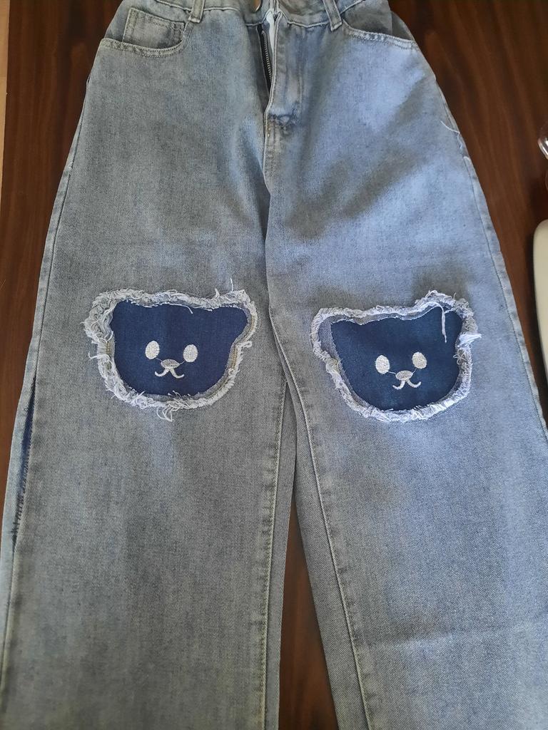 Cute Hip Hop Bear Print Jeans Girls Cool Harm Pants Trousers Female Punk High Waist Denim Pants Autumn Harajuku Jeans — buy online with free worldwide shipping!