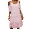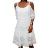 Sling Cold Shoulder Half Sleeve Summer Dress Crochet Embroidery Lace Stitching Mini Dress Female Clothing