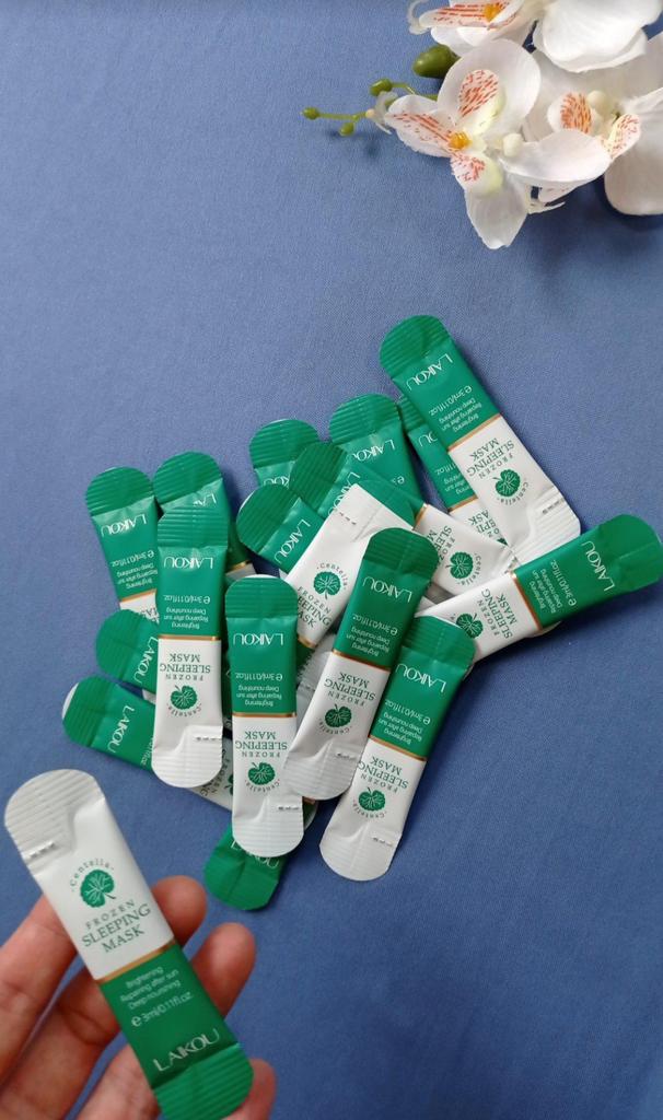 A set of night masks for the face, 20 pcs.👍 The composition of the mask includes Asian centella, which has a wonderful effect on the skin of the face: - rejuvenates; - prevents inflammatory processes; - improves microcirculation; - restores damage; - fights premature aging; - Protects against UV radiation. The night mask is saturated with useful vitamins and essential oils that have a beneficial effect on the appearance and general condition of the skin. Cosmetic product carefully cleanses and narrows pores, strengthens vessel walls. Regular application of the mask will allow the skin to look rested, give freshness and remove traces of fatigue. Application: apply 2-3 times a week before going to bed for about 10 minutes, remove the remains with a cotton pad or rub into the skin with light movements. I really like the effect after using masks. Definitely recommend.
