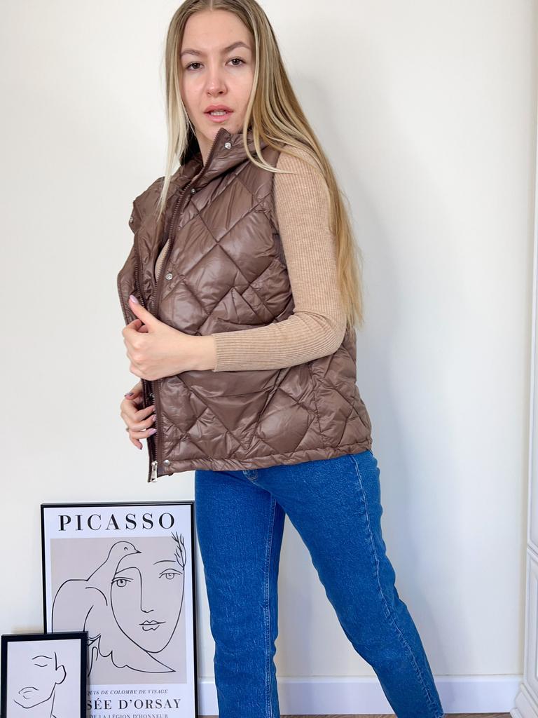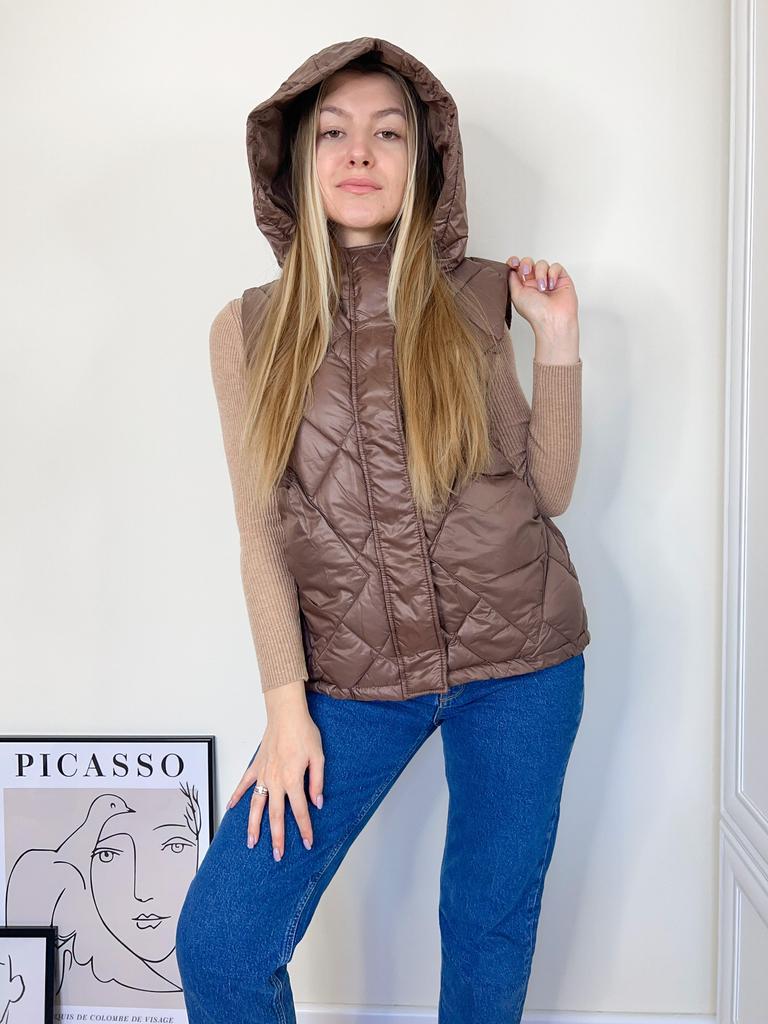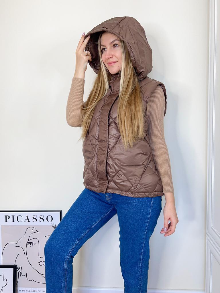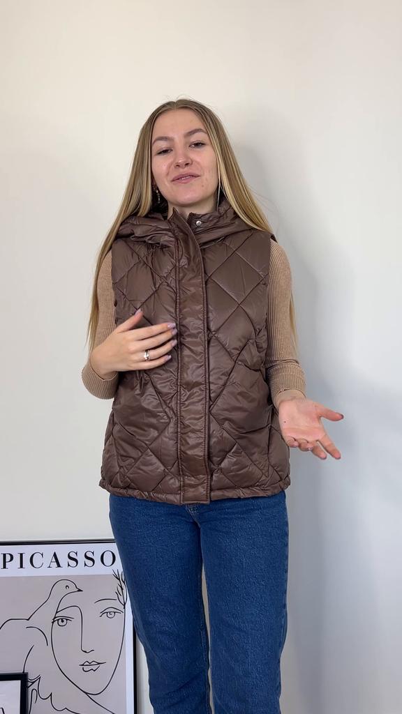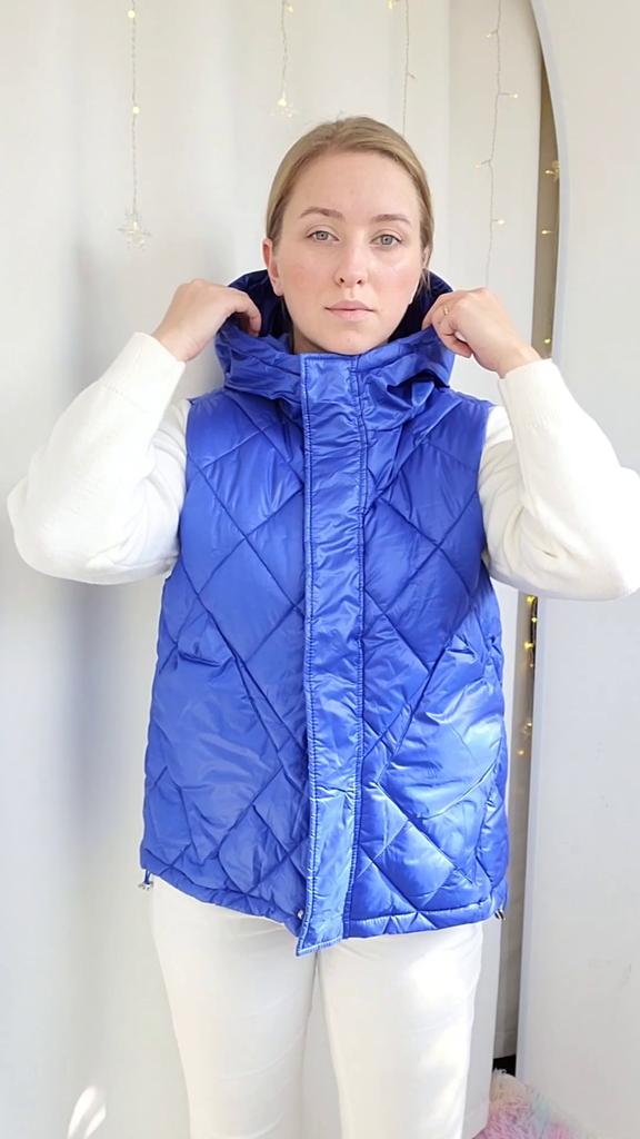 Women Autumn Winter Soild Color Rhombus Thicken Outwear Cotton Padded Hooded Sleeveless Warm Jacket Coat Vest