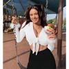 Long sleeve fur V-neck wrapped bandage sexy crop tops autumn winter women streetwear club party outfits T-shirts — buy online with free worldwide shipping!