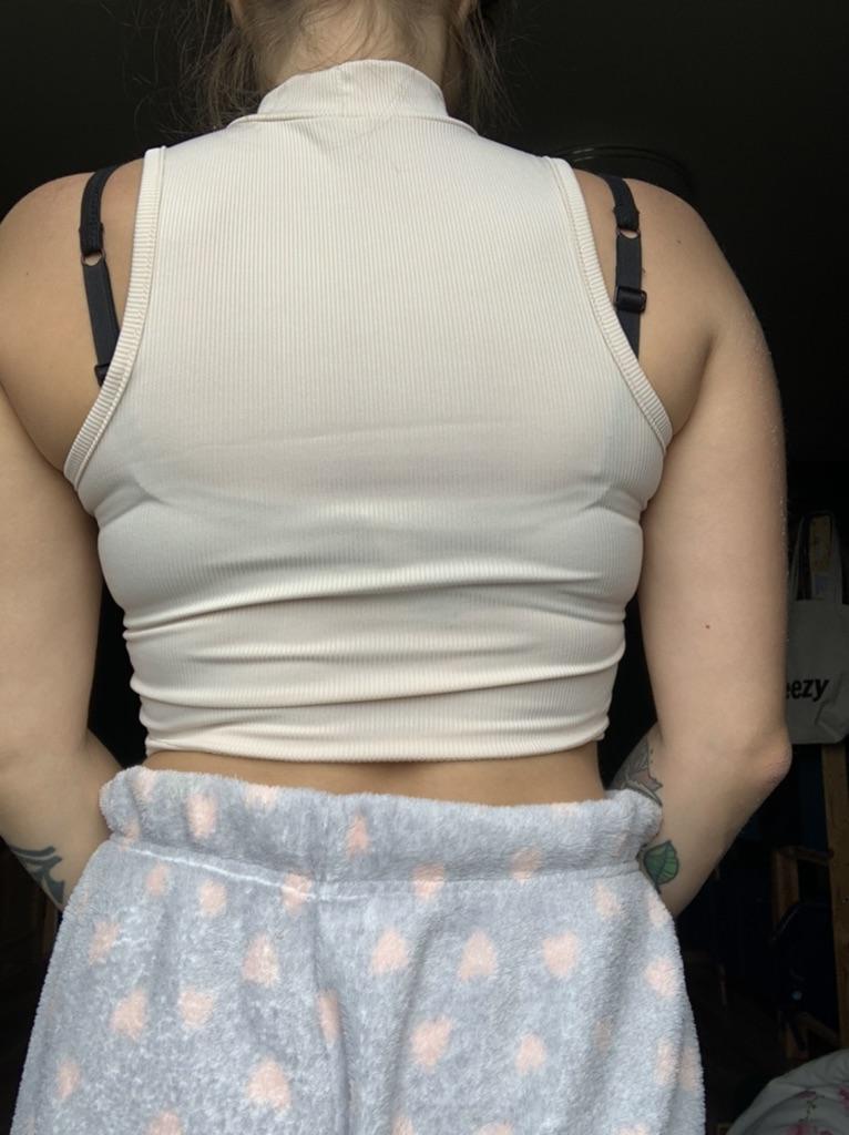 Nice fabric, not transparent, can be worn with or without a bra. Perfect with high waisted jeans