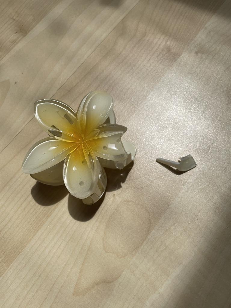 Arrived very bent, easily fixed with heat; coat the petals in a clear gloss to make it look better