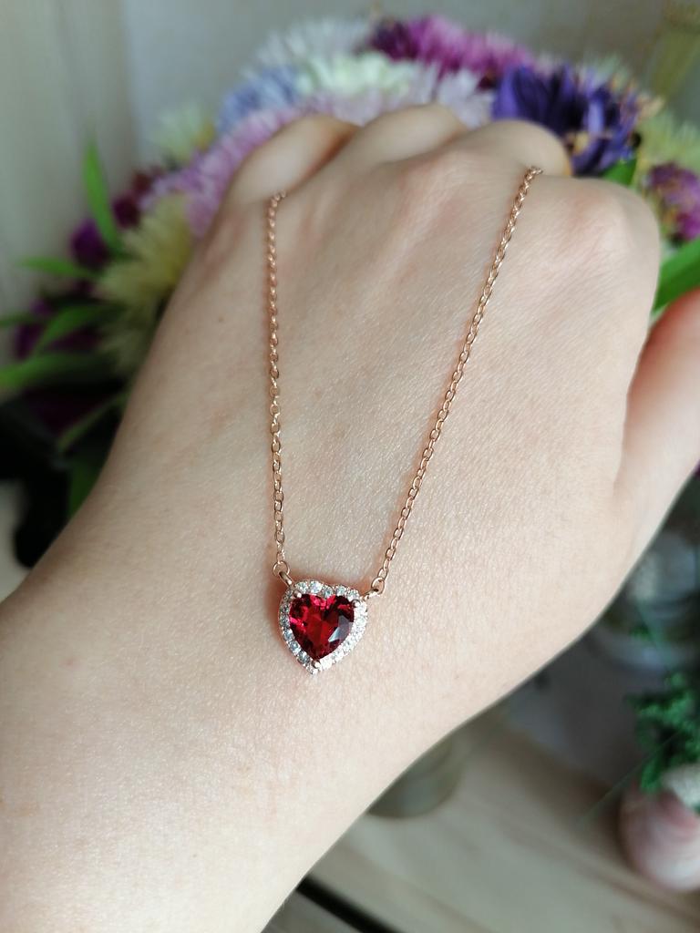 Bella Box New Style Elegant Heart-shaped Pigeon Blood Red Loverose Gold-plated Pendant Clavicle Chain Charm Wedding Engagement Fine Jewelry New Trendy — buy online with free worldwide shipping!