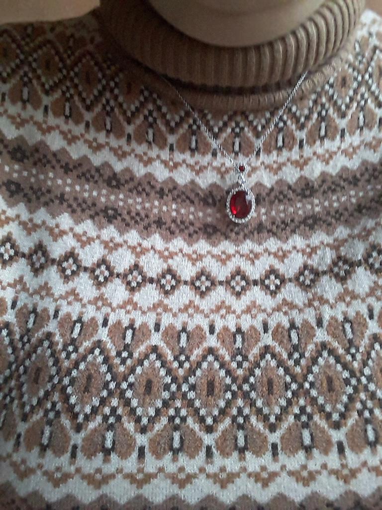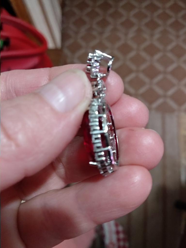 I received a pendant, very beautiful, large, the pebble burns !!!! Pendant in a box, put a napkin for rubbing, on a chain with a diamond engraving effect, chain length 42 cm. Thank you very much, very nice!!