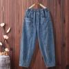 Women Summer Large Size High Waist Casual Trousers Loose Thin Jeans Denim Cropped Pants