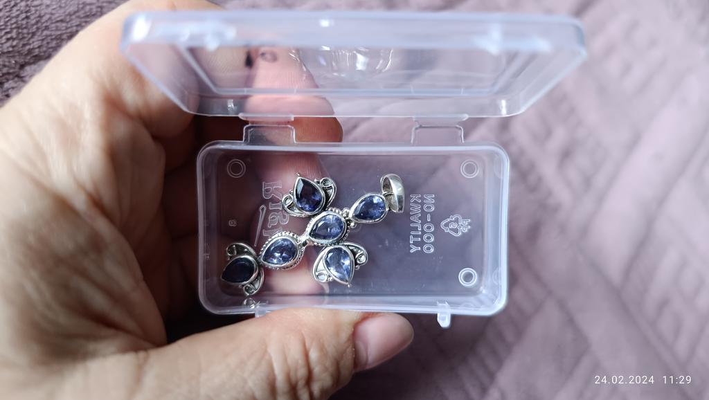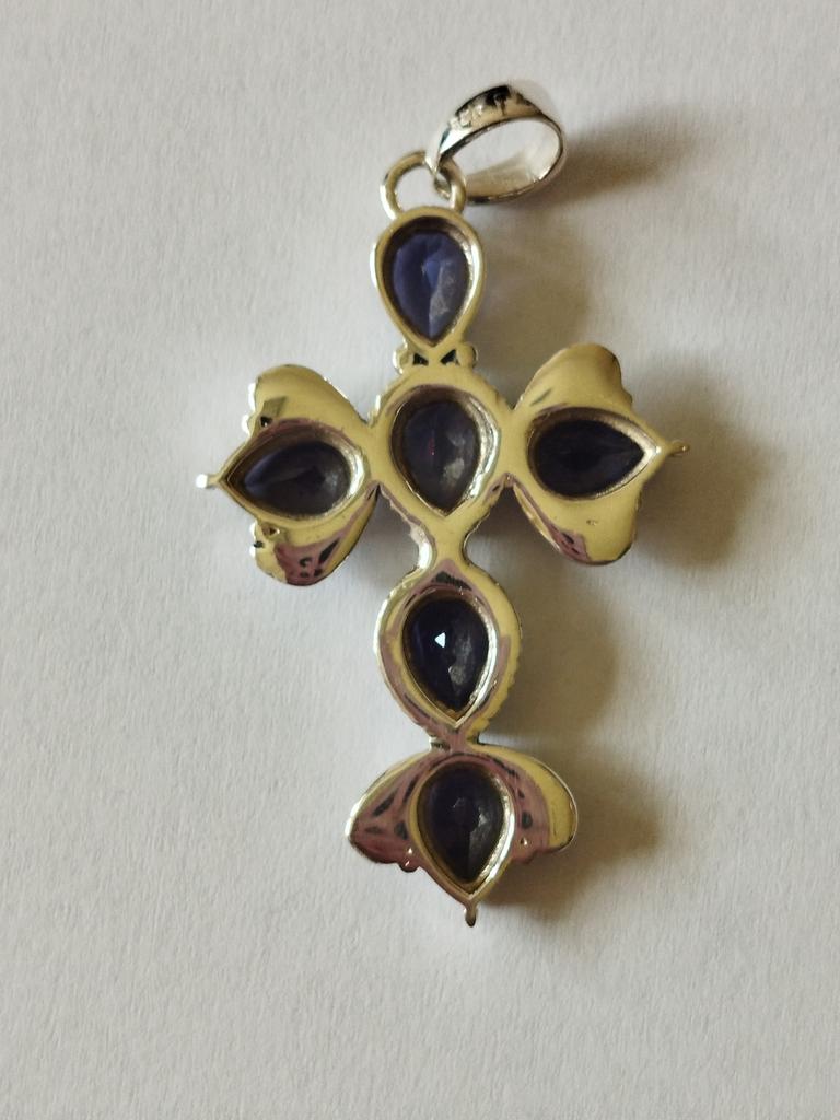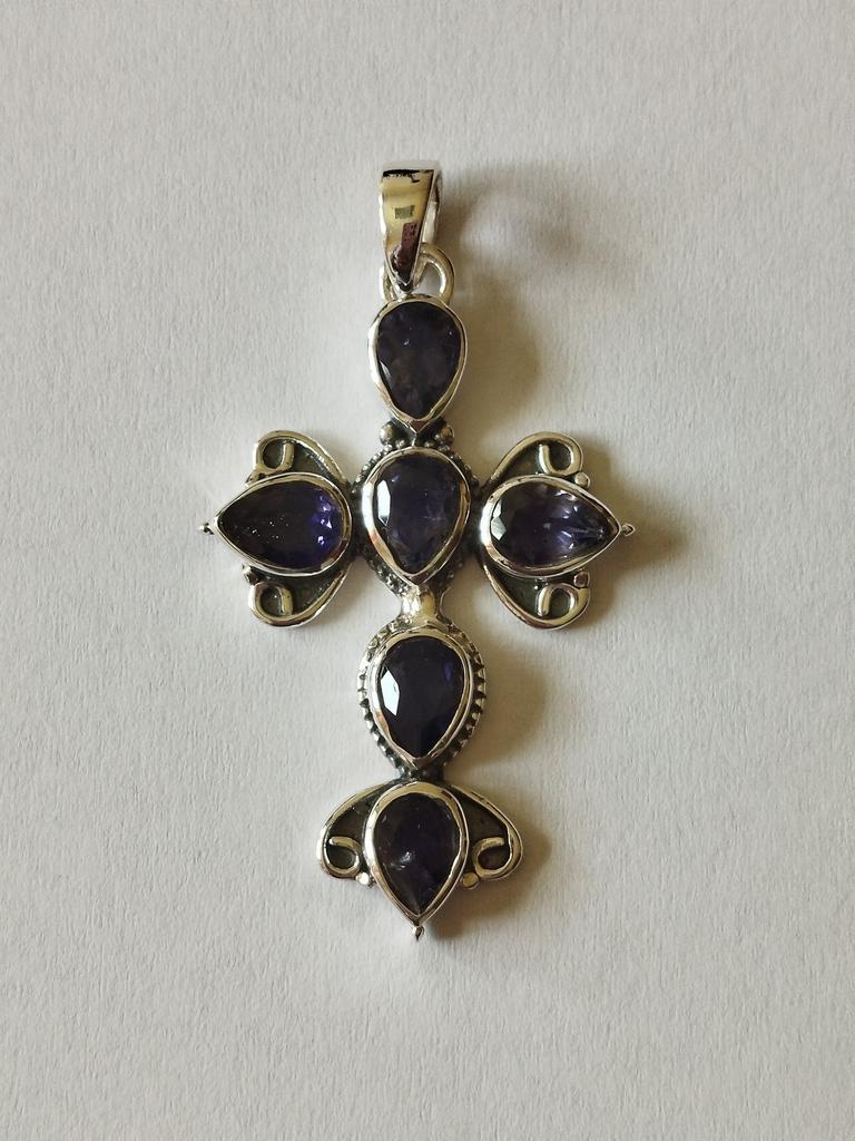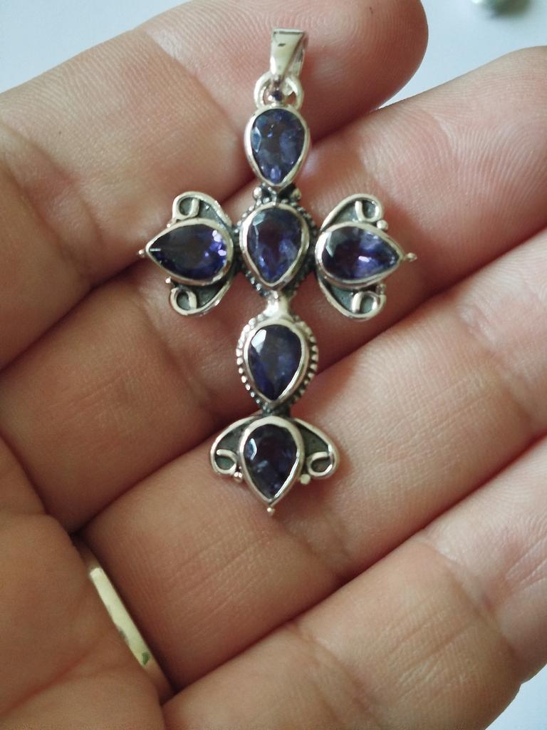 Reiki Pendant, Silver Jewelry, Crystal Healing Pendant, Iolite Silver Pendant, 925 Sterling Silver Handmade Jewelry, Cross Pendant — buy online with free worldwide shipping!