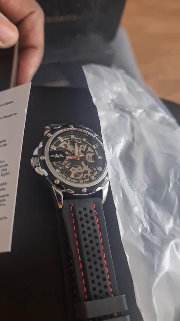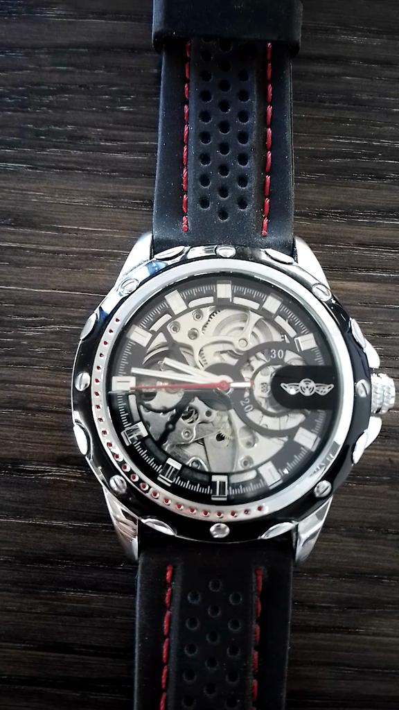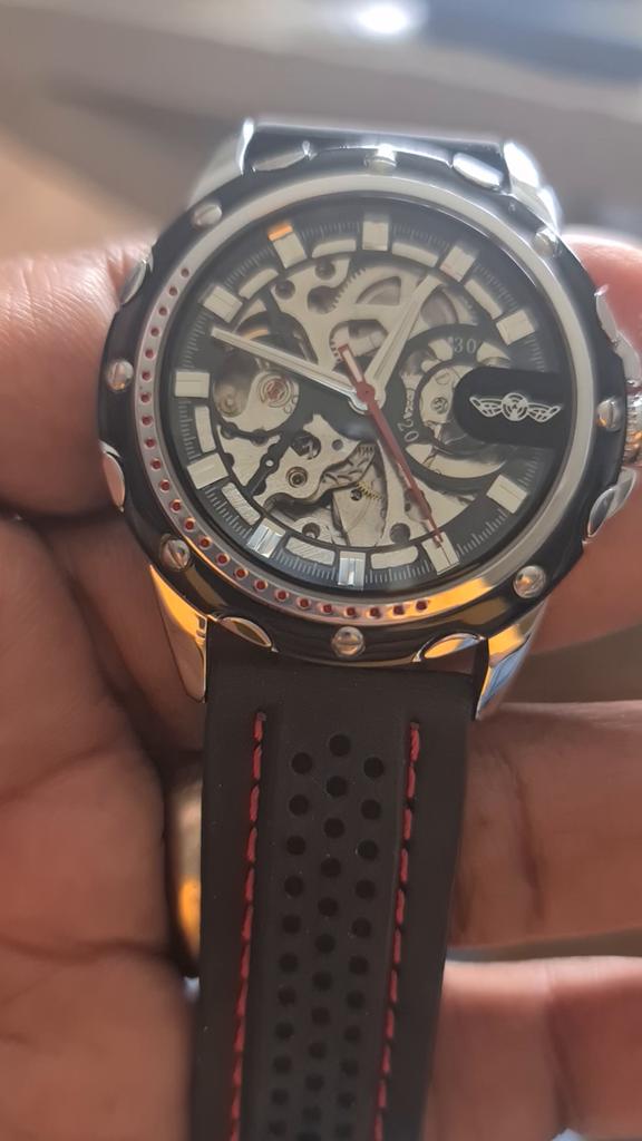 Winner Top Men's Watch Skeleton Men's Automatic Mechanical Watch Black Fashion Watch Silicone Strap