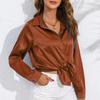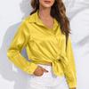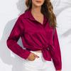 Women's Loose Fashion Shirts Solid Color Band Collar Long Sleeve Shirts Slim Tops