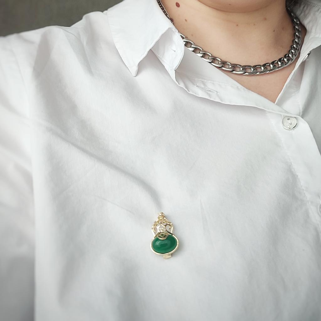 Blucome New Jewelry All-match Hollow Gourd Brooch Fulu Inlaid Hetian Jasper Women Pins Accessories