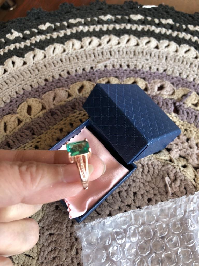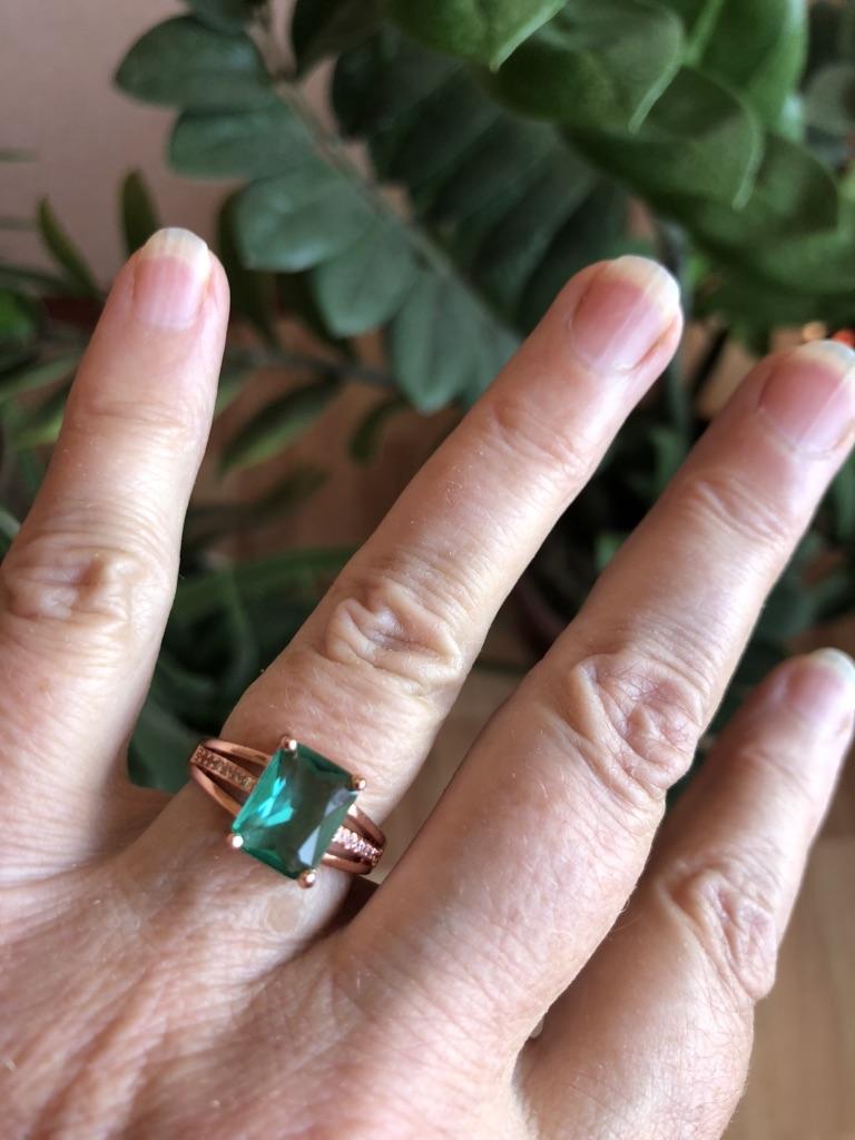 The shape of the ring is beautiful. The central stone is of good quality, not the color of a cheap emerald. But the color of the metal ruins everything. A lot of copper was poured into the alloy. It's immediately obvious that it's costume jewelry. I think it will darken with wear.