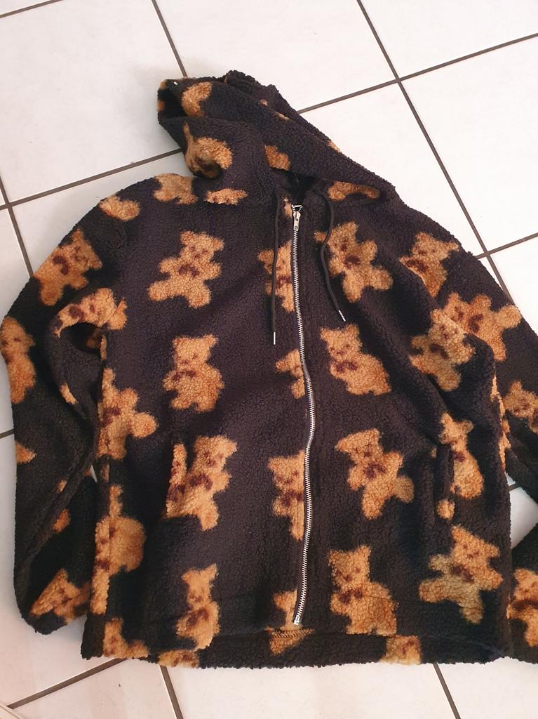 Autumn Winter Women's Hooded Plush Bear Printed Cartoon Sweater Women's Winter Warm Jacket Fleece Jacket