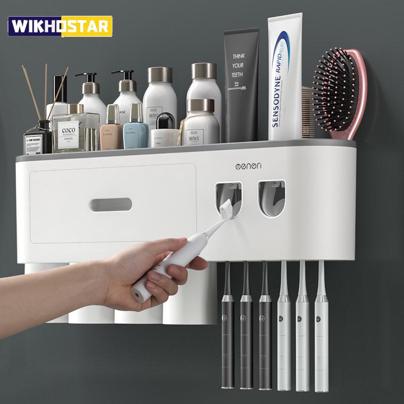 Magnetic Adsorption Inverted Toothbrush Holder Double Automatic Toothpaste Squeezer Dispenser Storage Rack Bathroom Accessories